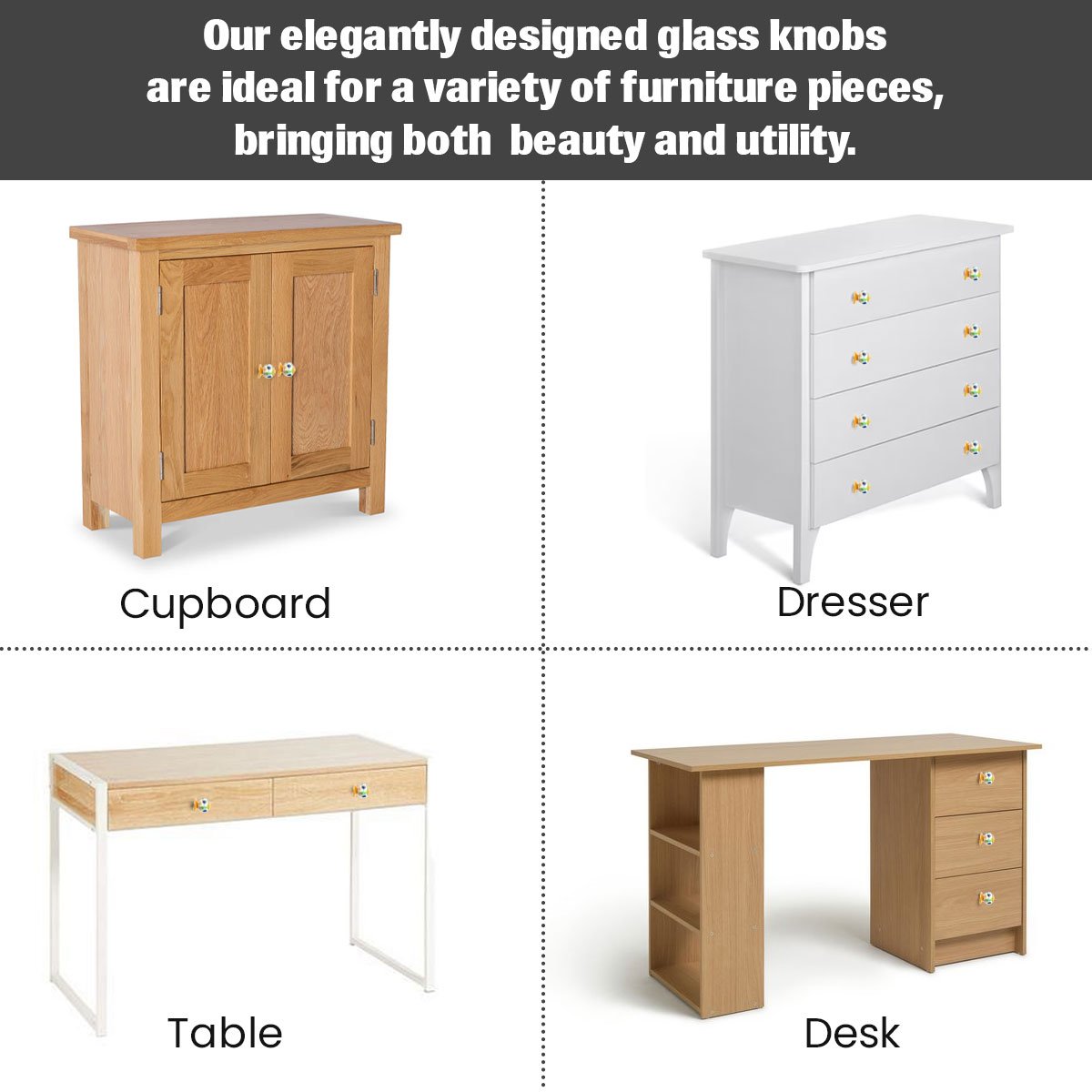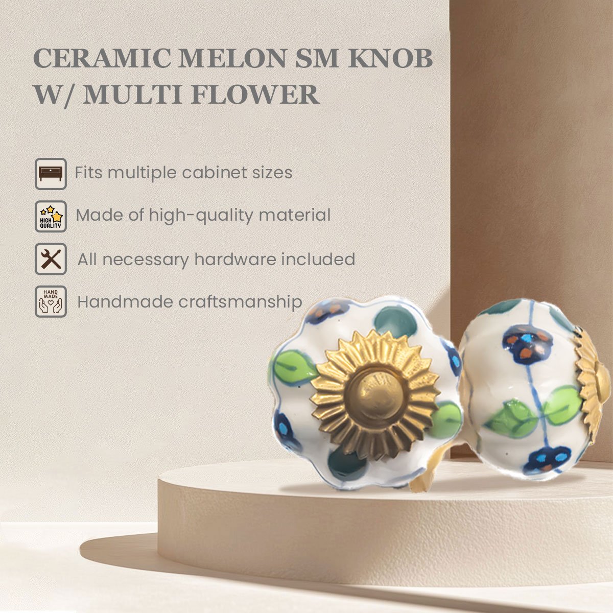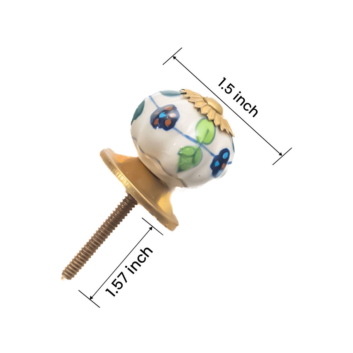 Unleash a burst of artisanal charm and unique character into your home with our Assorted Multiflowered & Abstract Hand-Painted Ceramic Knobs from CDNY. This delightful pack of six features brilliantly crafted ceramic knobs, each a miniature work of art. Adorned with a variety of whimsical, hand-painted floral and abstract designs in vibrant blues and refreshing greens against a glossy white background, these knobs bring an eclectic and spirited touch to any furniture piece. The distinctive patterns, coupled with an elegant gold-tone leaf-inspired cap, create a look that is both playful and sophisticated. Measuring approximately 1.5 inches in diameter, these eye-catching knobs are perfectly sized to transform dresser drawers, refresh kitchen cabinets, or bring a chic update to bathroom vanities and other furniture. The durable brass hardware ensures lasting performance and provides a warm, classic contrast. They blend seamlessly with bohemian, eclectic, cottage, traditional, or even modern glam interior design themes, adding a unique pop of color and personality. Installation is remarkably easy with the included hardware, allowing you to effortlessly update your furniture and infuse your rooms with understated luxury and captivating individuality. Let these stunning hand-painted ceramic knobs by CDNY turn your ordinary furniture into extraordinary focal points of style and depth.