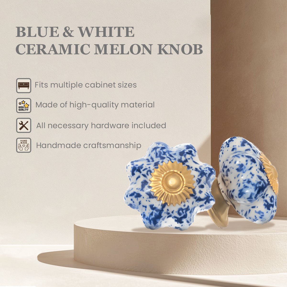 Add a touch of whimsical charm and unique character to your home with our Speckled Blue & White Ceramic Knobs from CDNY. This delightful pack of six features beautifully crafted knobs in a charming pumpkin or gourd-like shape, adorned with a captivating blue speckled pattern on a pristine white ceramic base. Each knob is meticulously made from high-quality ceramic, offering a smooth, comfortable grip and a distinctive aesthetic that stands out in any setting. Perfect for injecting a playful farmhouse, coastal, modern rustic, or eclectic feel, these versatile blue speckle ceramic knobs seamlessly blend with various decor styles. Whether you're refreshing kitchen cabinets, updating a child's bedroom furniture, or adding a unique accent to any piece, these eye-catching knobs are designed for both charming beauty and practical functionality. Installation is a breeze with the included brass hardware, ensuring a secure and lasting fit. Transform your living spaces with unique charm and a delightful visual texture with these stunning Speckled Blue & White Ceramic knobs by CDNY, turning ordinary furniture into extraordinary focal points. Additional Information: