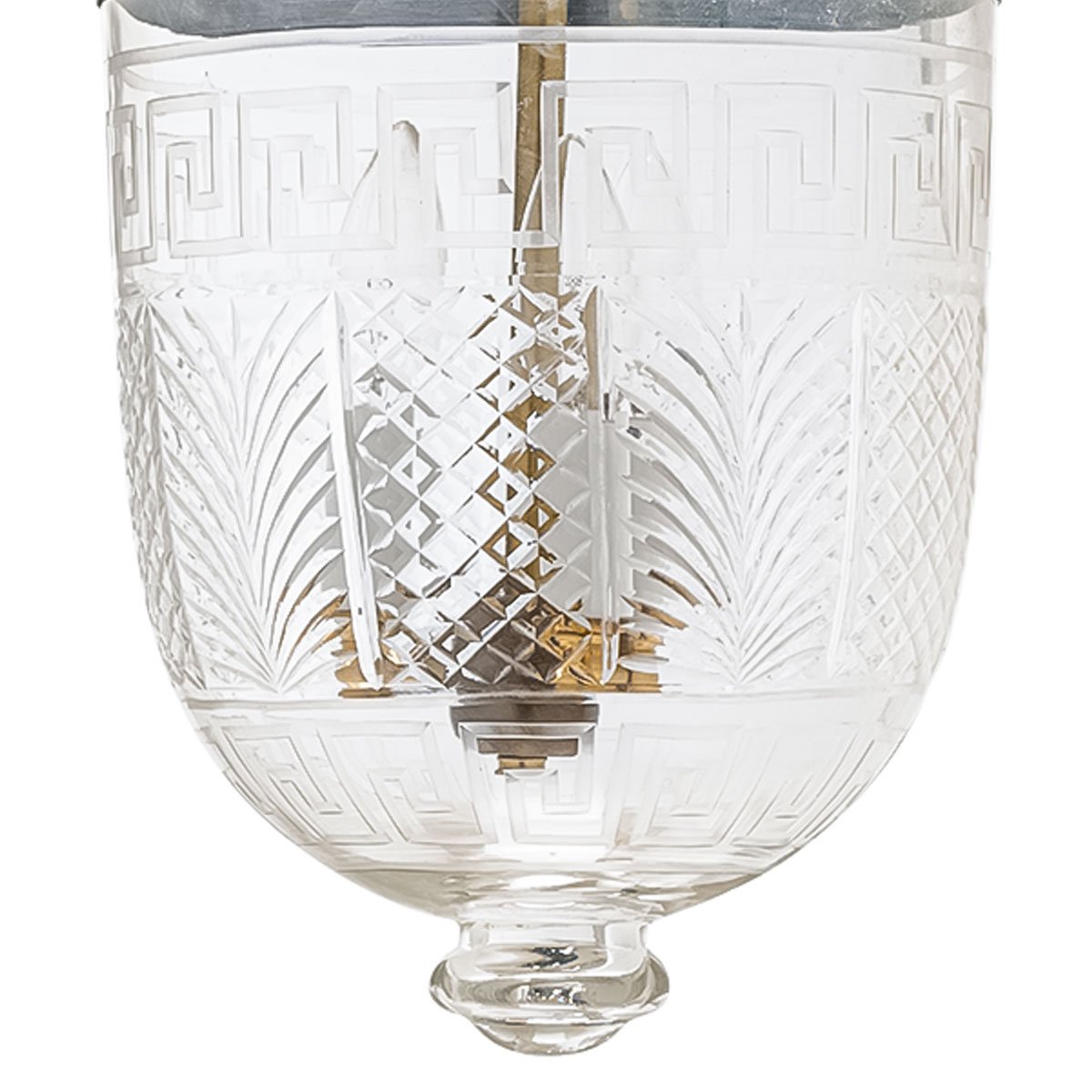 Introduce a touch of classical elegance and sophisticated geometry with the CDNY MED. GREEKEY W/DESIGN LANTERN. This striking ceiling-mounted chandelier combines ancient-inspired patterns with timeless design, creating a distinguished focal point for larger entryways, dining rooms, or living spaces that seek both illumination and artistic flair. The defining feature of this lantern is its generously sized clear glass jar, intricately etched with a distinctive "Greek Key" or "Greek Fret" pattern, possibly combined with other geometric or diamond motifs as seen in the visual. This intricate detailing not only adds profound visual depth and texture but also beautifully interacts with light, casting unique shadows and creating an atmosphere of refined artistry. The luxurious antique brass finish on the sturdy metal frame, elegant chain, and internal components perfectly complements the glasswork, enhancing its vintage and cultured appeal. With an adjustable 3-foot chain, you can easily customize the hanging height to create the ideal lighting fixture for your interior. Designed to accommodate three candle-style bulbs (60 watts each, bulbs not included), this fixture provides abundant and consistent lighting, transforming your room into a beacon of classical grandeur. Its commanding size and secure ceiling-mounted design ensure it stands as a prominent and elegant addition to traditional, neoclassical, or transitional interiors. Bring the enduring beauty and sophisticated patterns of this CDNY masterpiece into your cherished home.