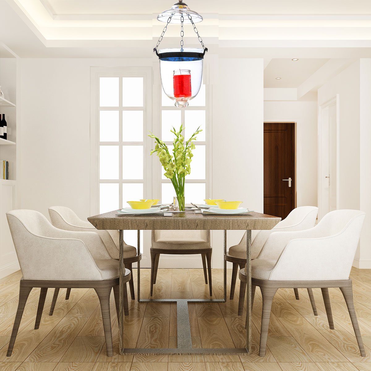 Enhance your home with the understated elegance of the CDNY Classic Smooth Clear Glass Hanging Baby Lantern. This versatile ceiling-mounted chandelier offers a timeless appeal, making it an ideal lighting solution for hallways, entryways, kitchen islands, or covered outdoor areas where a soft, inviting glow is desired. Crafted with pristine, smooth clear glass, this lantern provides an unobstructed view of your chosen bulbs, allowing their light to shine brightly and evenly. The glass is beautifully contrasted by darkened metal accents, possibly an antique black, bronze, or wrought iron finish, which adds a touch of rustic charm or industrial chic. The sturdy hanging chain, adjustable up to 3 feet, ensures flexible installation to perfectly suit your space. Designed to hold two candle-style bulbs (60 watts each, bulbs not included), this fixture delivers ample and warm illumination. Its compact yet impactful design and secure ceiling-mounted installation make it a distinguished addition that complements a variety of decor styles, from traditional to contemporary. Illuminate your surroundings with the refined simplicity and enduring style of this CDNY lantern.