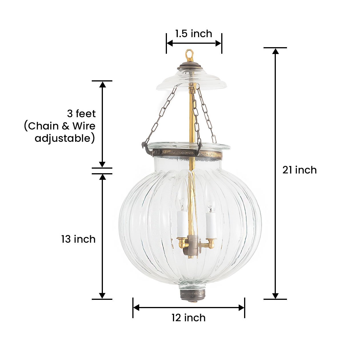 Bring a touch of classic charm and luminous simplicity to your space with the CDNY Large Melon Lantern. This elegant ceiling-mounted chandelier features a distinctive, rounded "melon" or gourd-shaped clear glass body. The glass is characterized by prominent vertical ribs, creating a beautiful textured effect that enhances light diffusion while maintaining crystal clarity. This plain yet captivating design allows the natural beauty of the light to shine through unobstructed, offering a versatile aesthetic that complements various interior styles. Its graceful presence is complemented by a rich antique brass finish on the sturdy metal frame, decorative hanging chains, and internal components, exuding a timeless luxury. Designed to accommodate three candle-style bulbs (not included), this fixture provides ample and consistent illumination, making it an ideal choice for entryways, dining areas, or hallways. The adjustable 3-foot chain and wire length offer excellent versatility, allowing you to customize the hanging height to perfectly suit your space and design preferences. Elevate your home's aesthetic with the captivating shape and pure brilliance of this CDNY masterpiece.